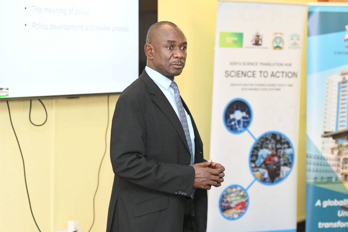 Paul Guthiga, an industry practitioner,  took the researchers through ‘Key concepts in agriculture and food security with a focus on policy and practice.’