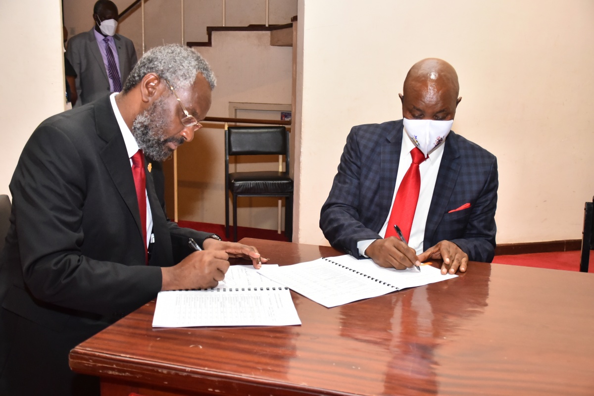 The UoN VC Prof. Kiama signing PC with Council member