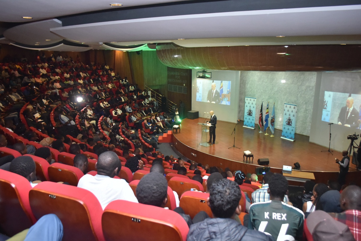 The new chancellor, Prof. Patrick Verkooijen addressing UoN students at the Inaugural townhall on Thur, Feb 1, 2024 at Chandaria Auditorium